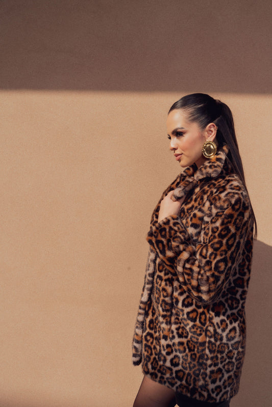ANIMAL PRINT FAUX FUR MINI COAT