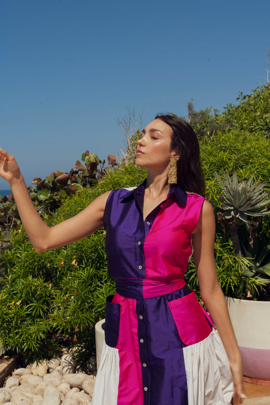 Draped Satin Maxi Dress in Fuchsia Pink.