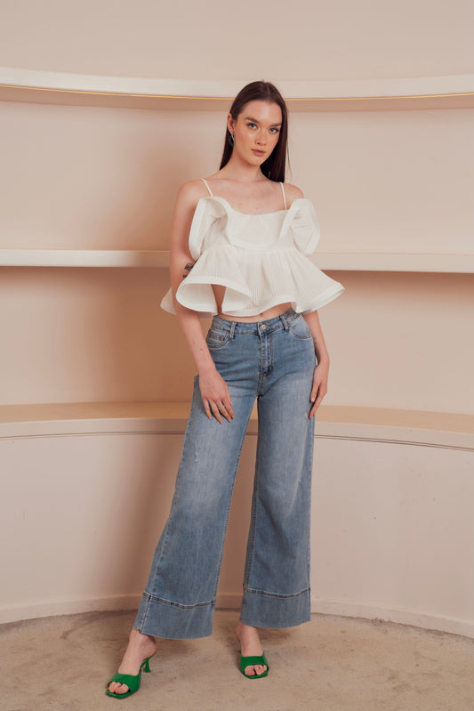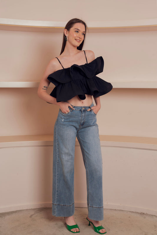 Tropical print V-neck blouse with cap sleeves and a relaxed fit.