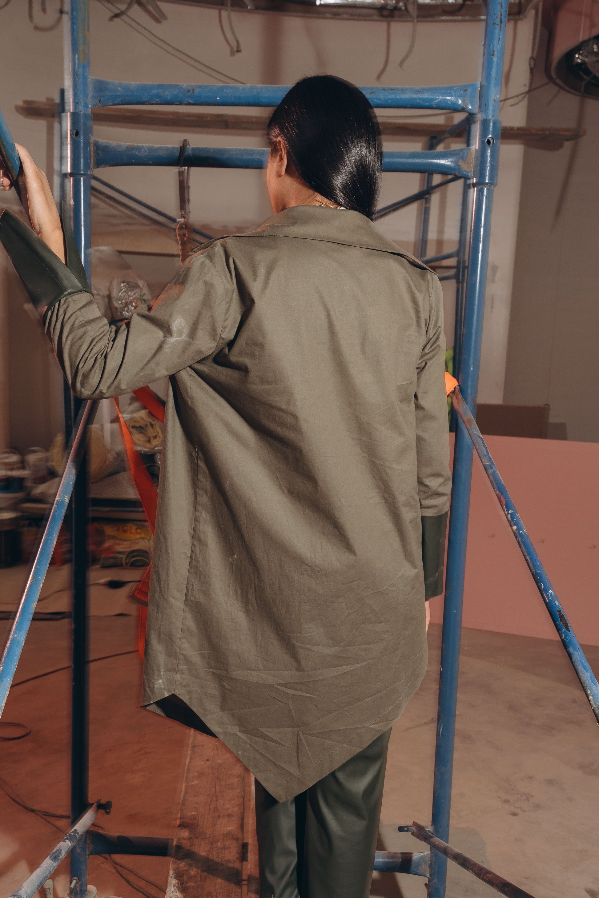 Designed to transcend seasons and trends, it strike the perfect balance between quality and functionality. This shirt is made into an asymmetric silhouette for contemporary flair and breast leather pocket.