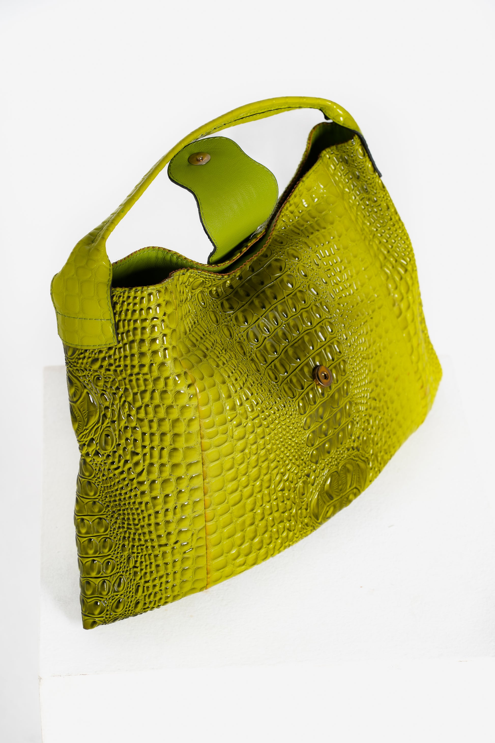 MAZOURA signature croc bag handcrafted from genuine high-quality leather from Italy with an open top closure designed in Egypt with elegance in mind.