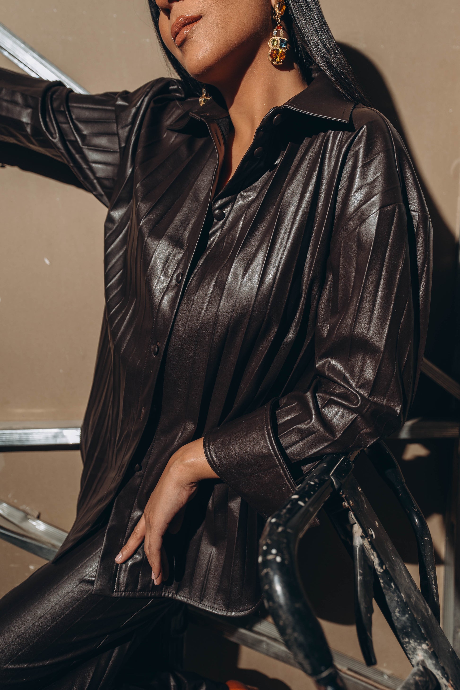 Our pleated heartbreak leather set, featuring regular fit, button fastening and crafted from Italian virgin leather