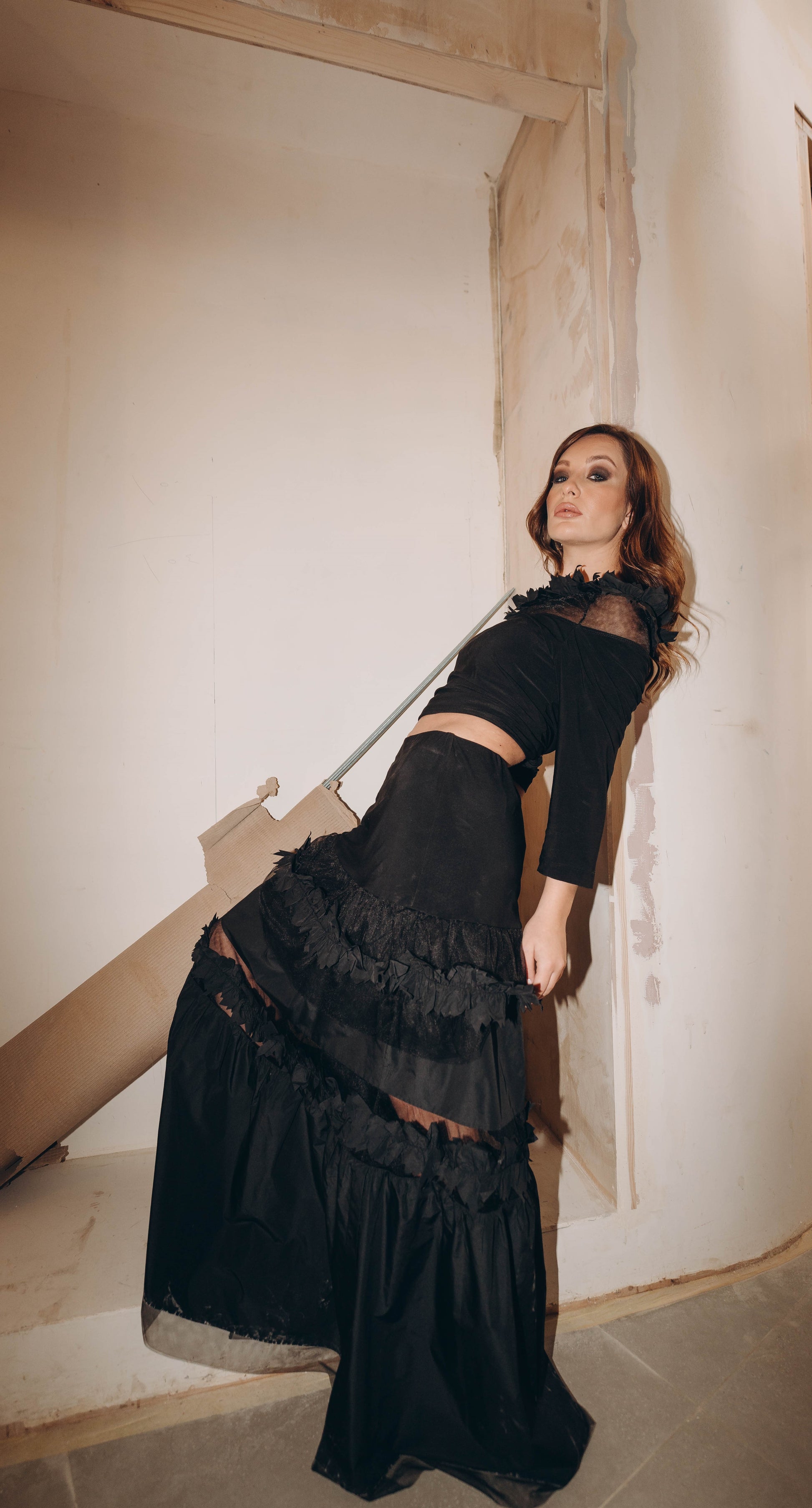 Change up your after-dark edit with this bold maxi skirt. The mesh style has a paneled construction and sits at mid-waist.