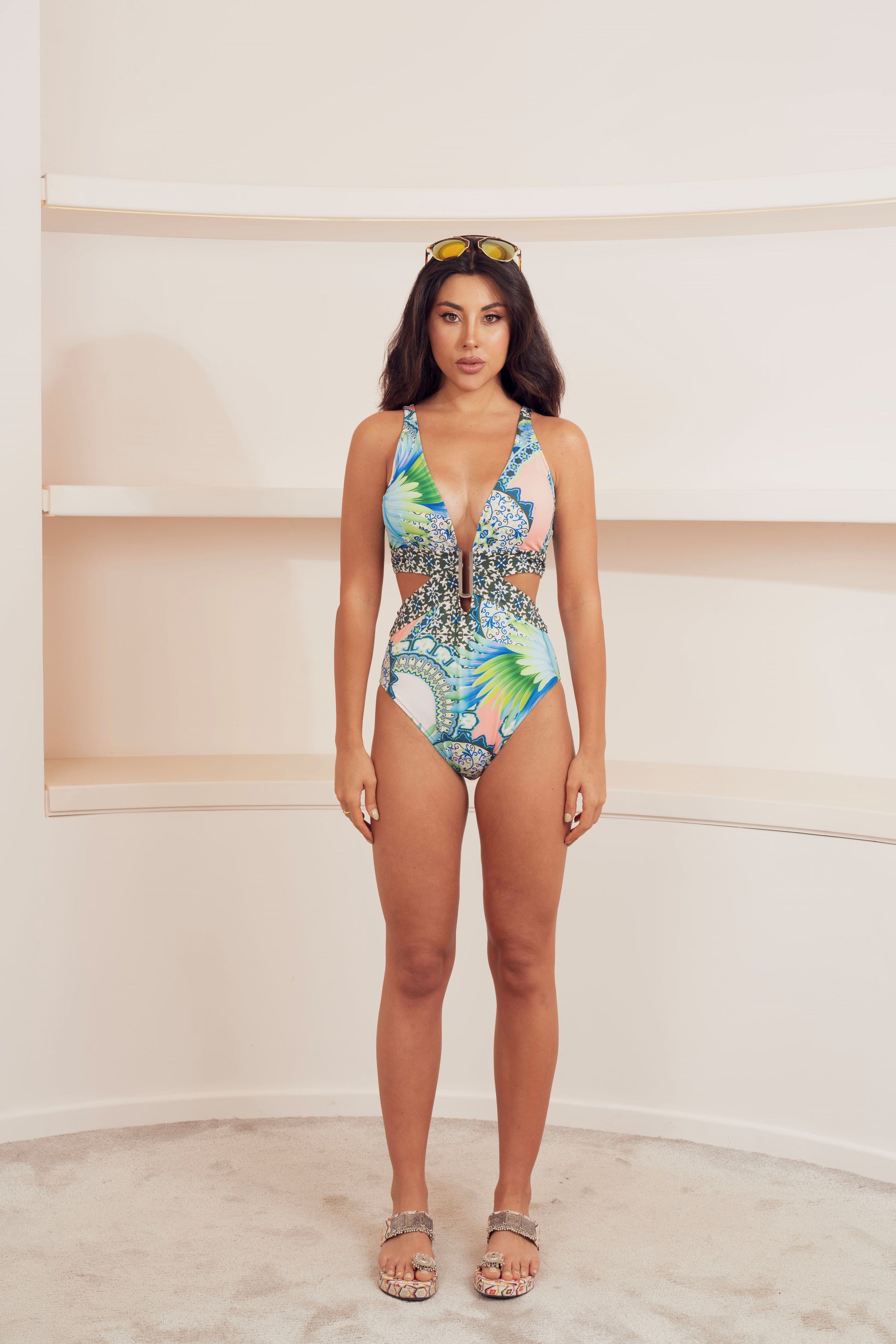 PATTERNED SWIMSUIT WITH ACCESSORY DETAIL